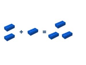 Here is another example. You have 2 Lego bricks, and your friend gives you 1 Lego brick. How many do you have in total now?
